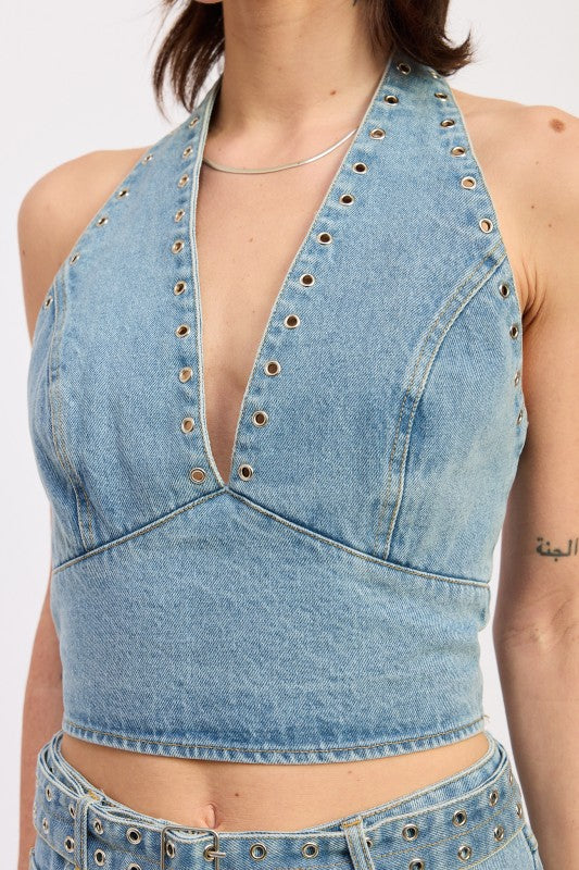 SUEDE HALTER TOP WITH BACK ZIPPER